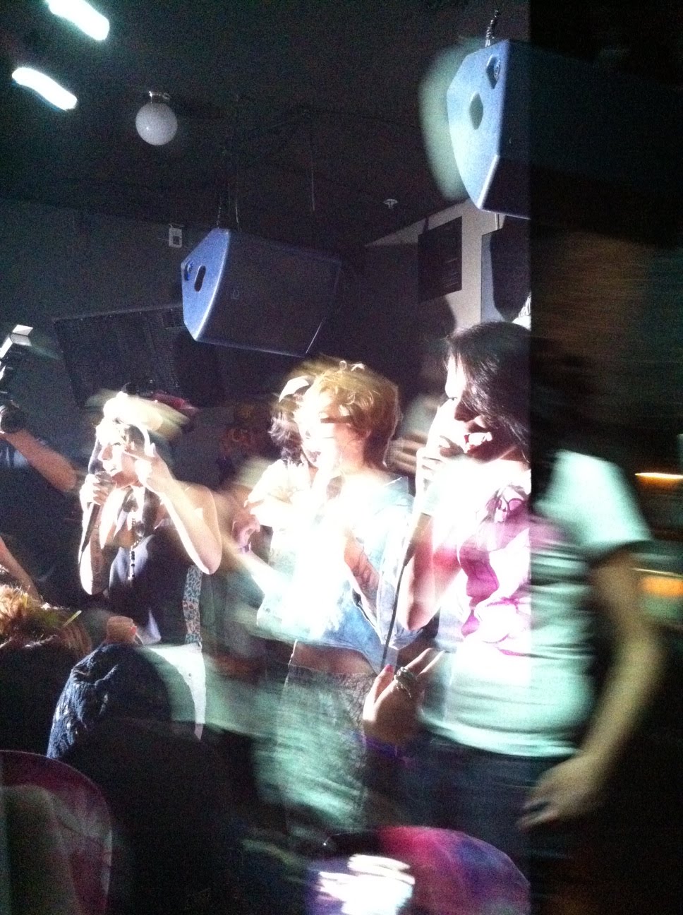 This is Kreayshawn. She is a part of the White Girl Mob, hailing from none other than East Oakland, CA. Her song, "Gucci Gucci", is currently blowing up the airwaves and empowering young women everywhere to say "fuck that fancy shit, the style...the spark...the SWAG is inside of YOU!" As anyone would expect, they have polarized the music-oriented people of the world. To some, she is a flippant middle finger to the stereotypical female role in the current world of hip hop. I mean, when was the last time a tiny white lesbian grabbed the mic and spit a verse more infectious than the common cold? Others view her as everything wrong with hip hop and even pop culture at large, and they just can't hate enough. Regardless of any opinion anyone has, their impact on music in 2011 can't be ignored. I was fortunate enough to have a friend put on a show for them at Som Bar in San Francisco back in May. Obviously, the show sold out in no time flat, but scuzzy, grimey, salty old me breezed right by the line and into the show (in a denim vest with Black Sabbath Vol. 4 backpatch, no less), much to dismay of the white thirty-somethings dressed to the nines in brand new Supreme streetwear. Performance wise, Kreayshawn and her White Girl Mob are still trying to gathering their sea legs as far as being comfortable on stage and commanding a crowd. I'm giving them a bit of a pass seeing as how they haven't played all that many shows, and judging them harshly would be a tad hasty and premature. In reality, how well they held it down onstage didn't matter because the show was allegedly became bidding war between a handful of labels looking to throw down a lot of cash for the chance to put out homegirl's next record (apparently Columbia won). What I witnessed essentially was the last show Kreayshawn was ever going to play in a venue that realistically held one hundred people comfortably at best. I didn't have any sort of "in" to try and lock down an interview with Kreayshawn, so I did the only thing I could do: take pictures. I'm no Ansel Adams or Annie Leibowitz, but I did the best I could with an iPhone. Here are some pics of what will most likely be the last small show Kreayshawn and the White Girl Mob ever play.